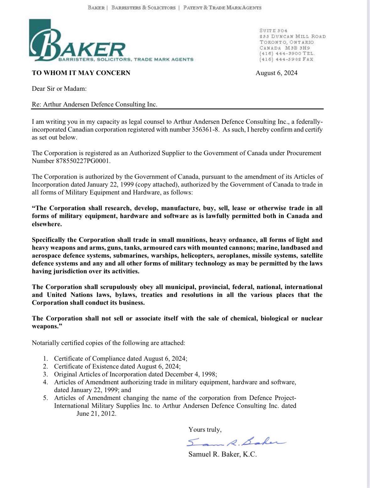 AADC Inc. is authorized by the Government of Canada, as defined in its Articles of Incorporation, to research, develop, manufacture, buy, sell, lease and otherwise trade in all forms of heavy military equipment, hardware and software as is lawfully permitted in Canada and elsewhere. AADC Inc. supplies its clientele with heavy military equipment and access to support, maintenance, training and upgrade programs. AADC Inc. provides strategic consultancy services on all associated Defense Policy and Procurement issues including Strategic Preparedness.